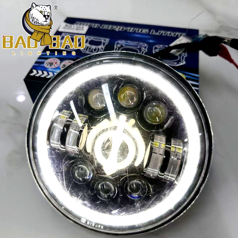 7 ইঞ্চি সাদা হলুদ মোটরসাইকেল LED হেডলাইট অ্যালুমিনিয়াম 12V জলরোধী IP67 IP68