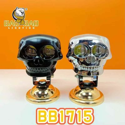 অ্যালুমিনিয়াম মাথার খুলি ১২ ভি ২ চোখ সাদা হলুদ দ্বৈত রঙের ফ্ল্যাশ রৌপ্য কালো মোটরসাইকেলের জন্য মিনি ড্রাইভিং লাইট